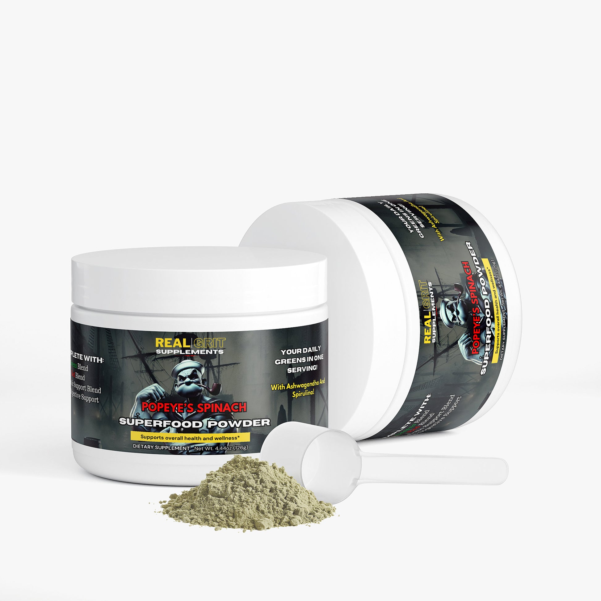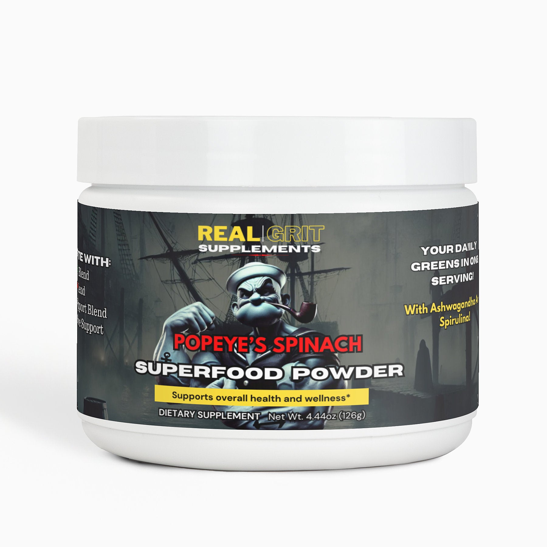 Unleash the legendary power of the classic cartoon sailor with Popeye's Spinach, the ultimate superfoods supplement designed to fuel your body with the essential nutrients it craves. Inspired by Popeye's iconic burst of strength from his beloved spinach, this potent blend combines greens, reds, metabolic, and digestive support to help you conquer your day with vigor.
